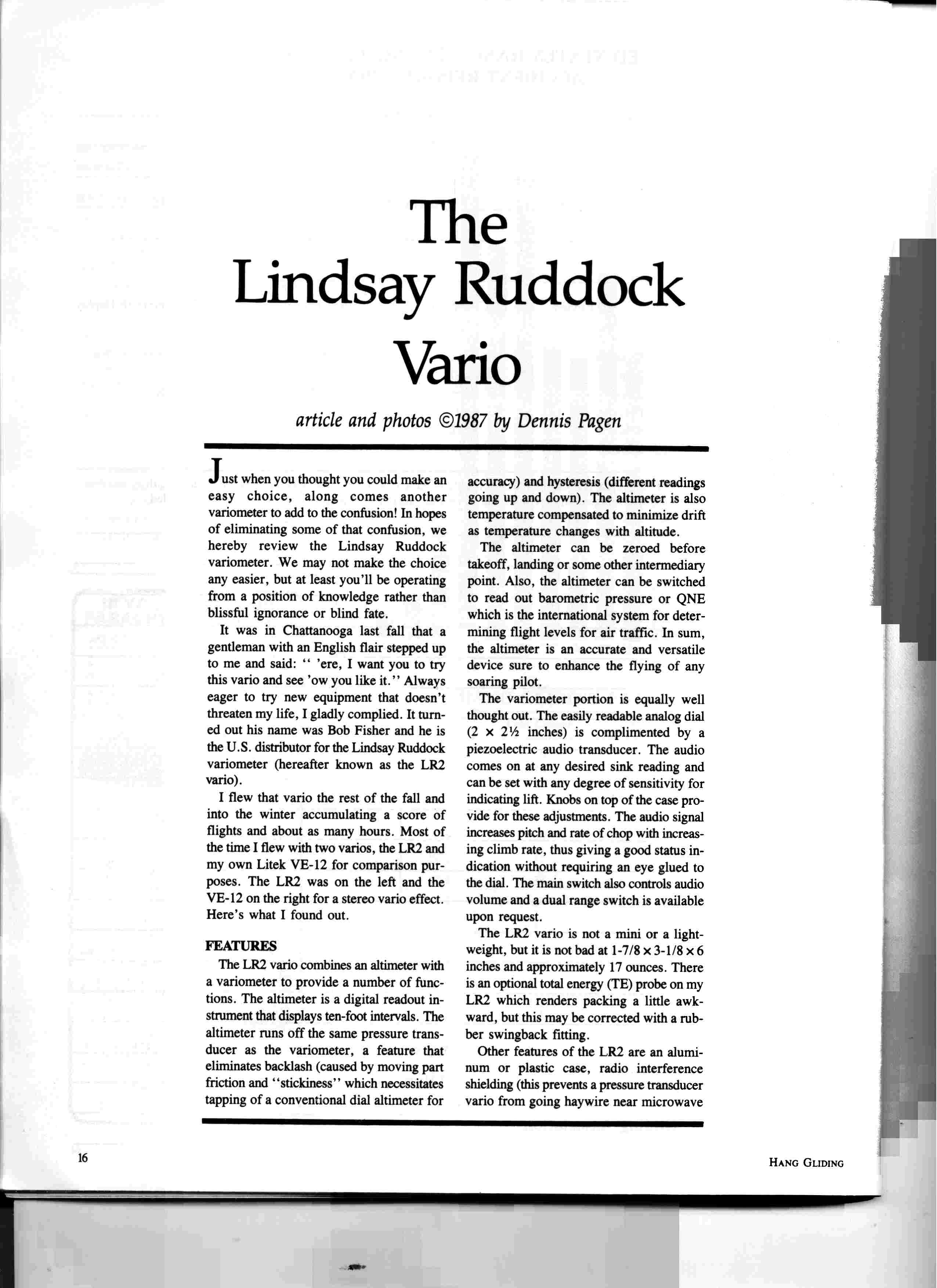 More background to the LR2 can be had from a review in the US HGA magazine Hang Gliding: