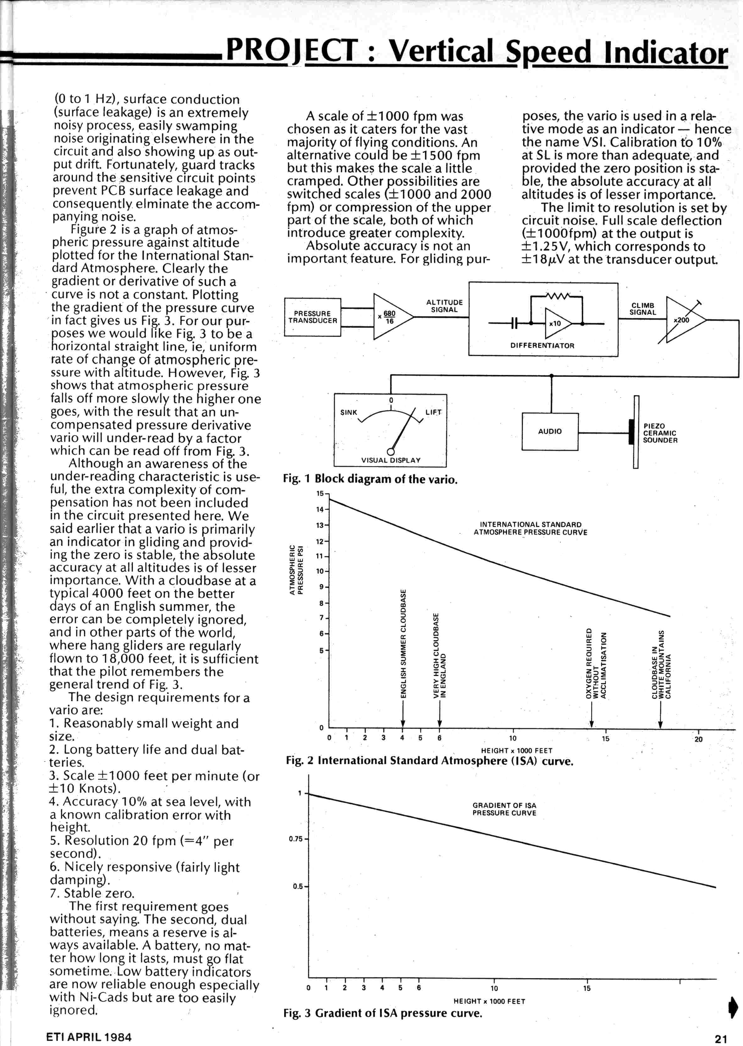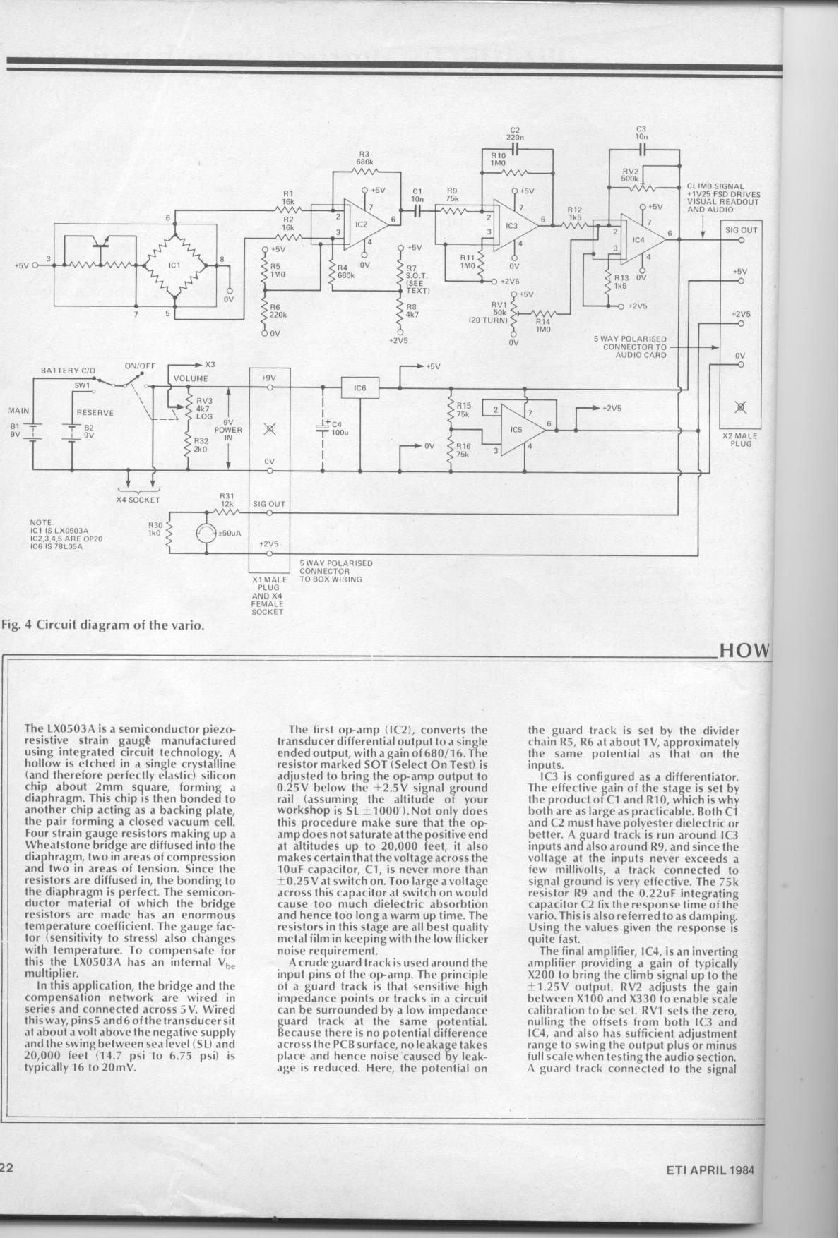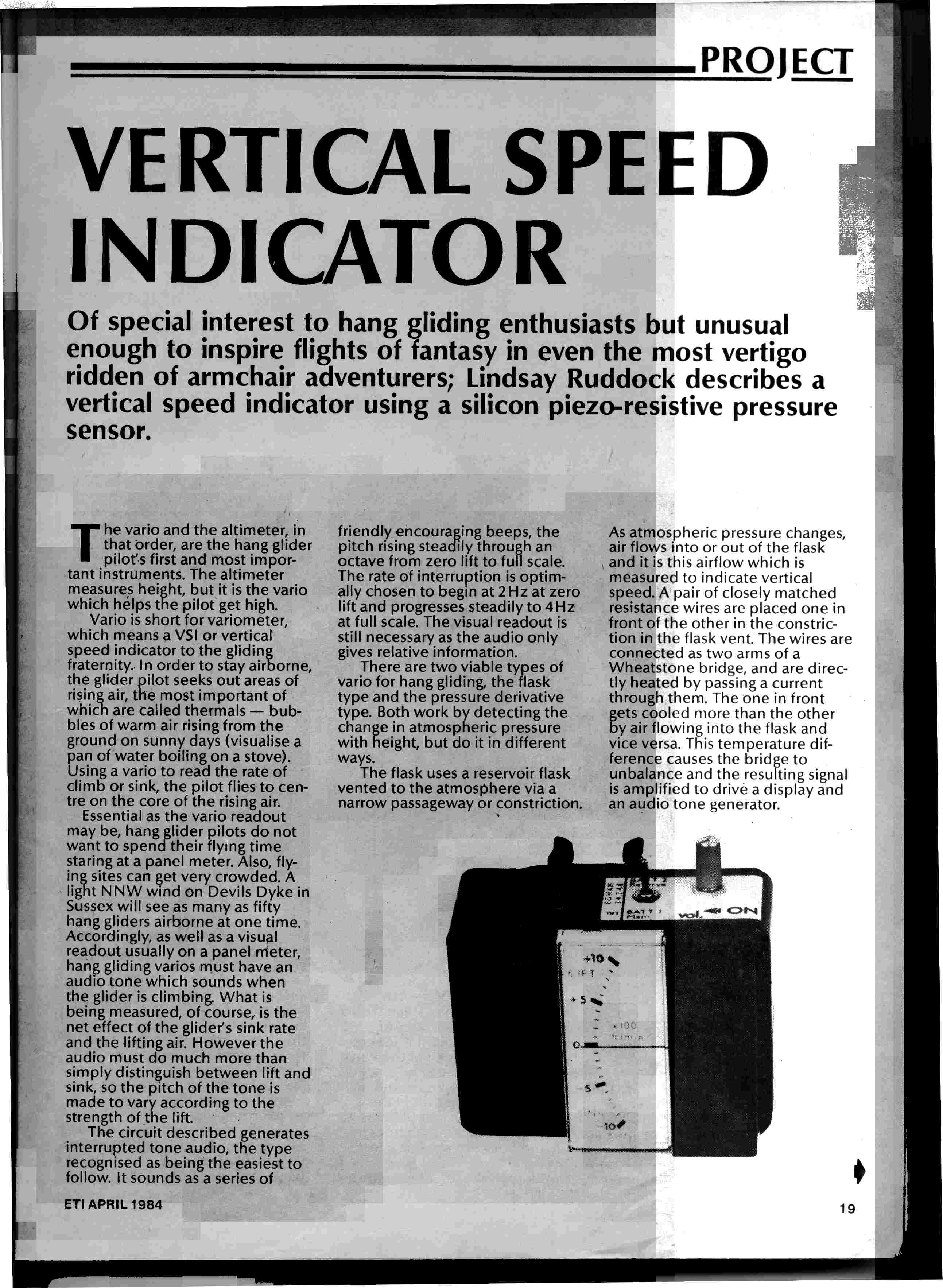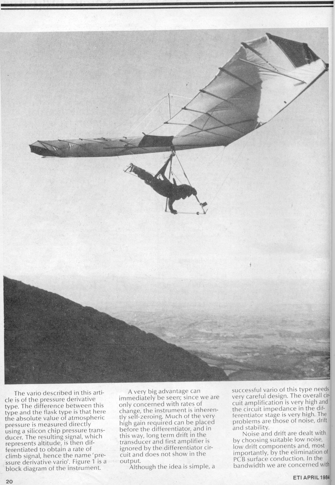 The article describes how to knock up a simple audio-visual vario and was aimed at the surprising number of pilots with the hobby skills to make their own vario. The article is still of interest anyone wanting to make their own vario.