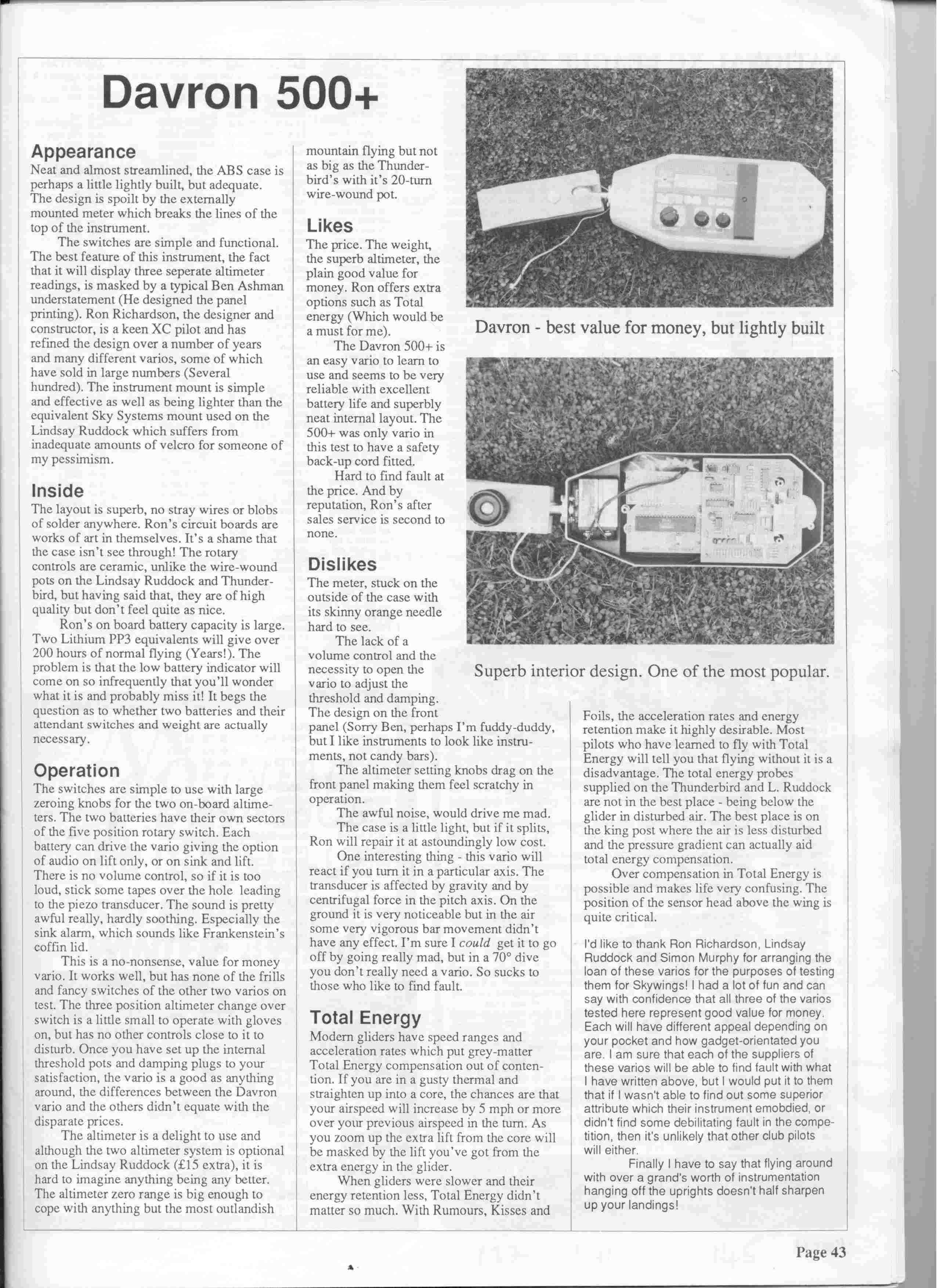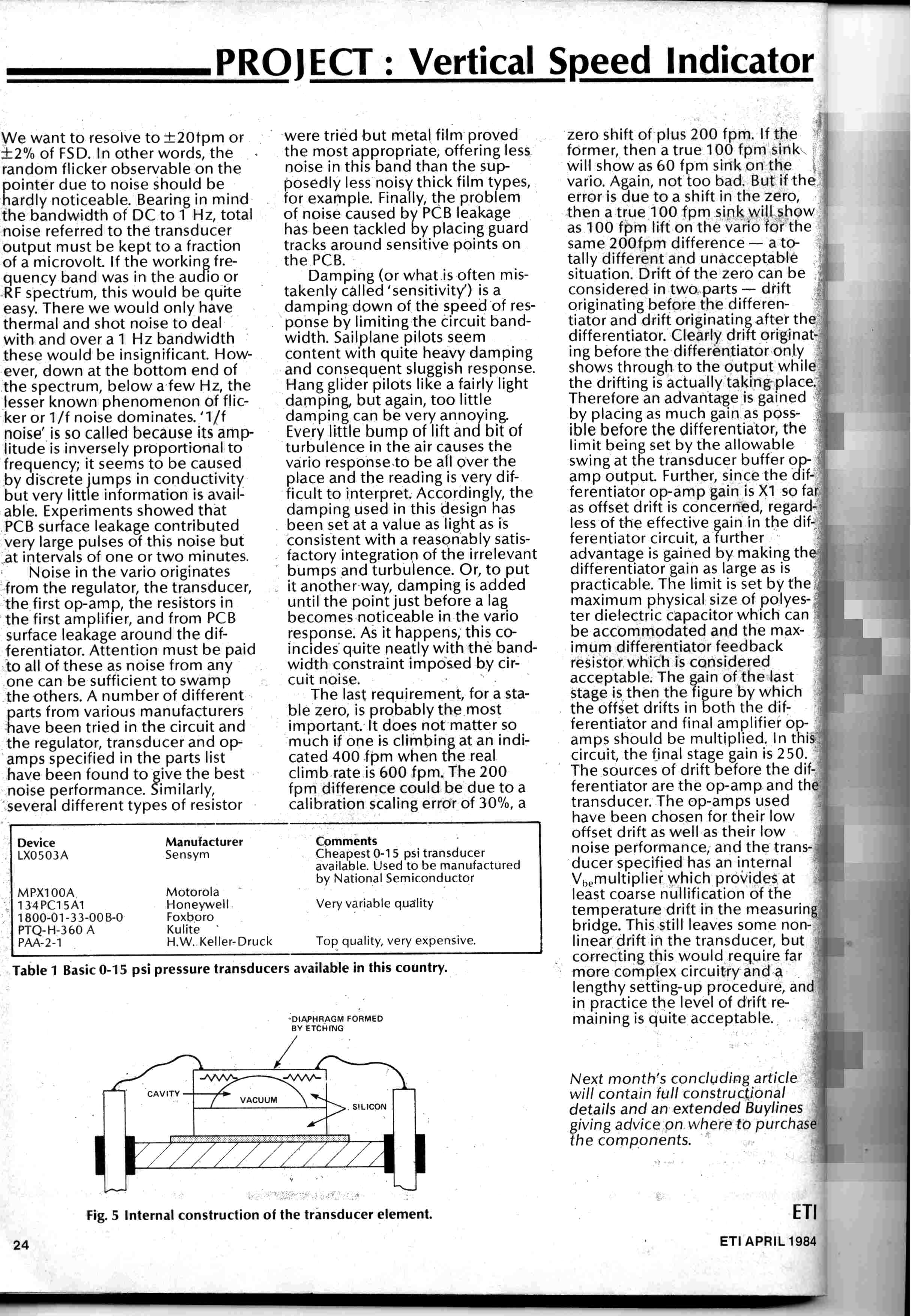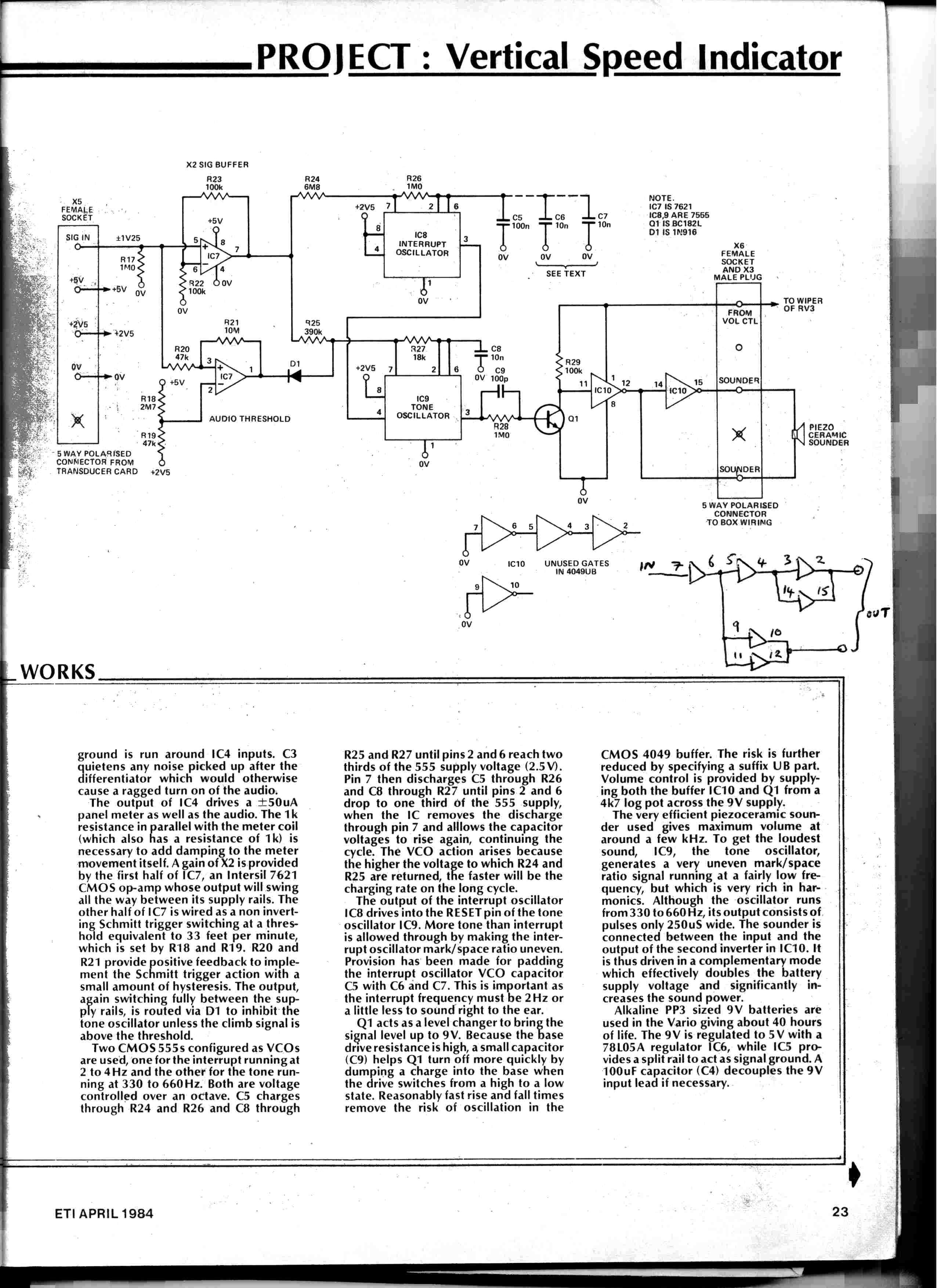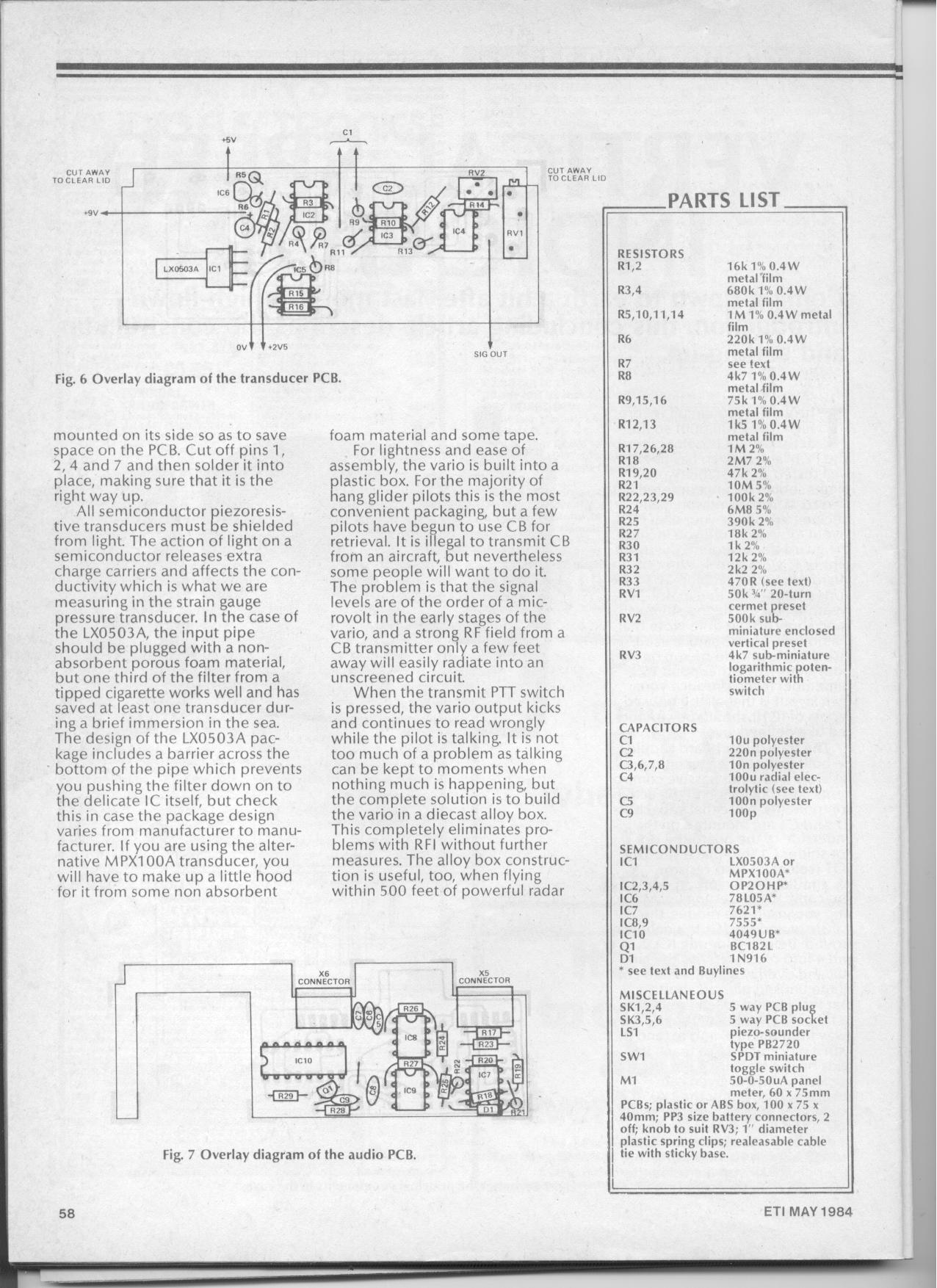 The article describes how to knock up a simple audio-visual vario and was aimed at the surprising number of pilots with the hobby skills to make their own vario. The article is still of interest anyone wanting to make their own vario.